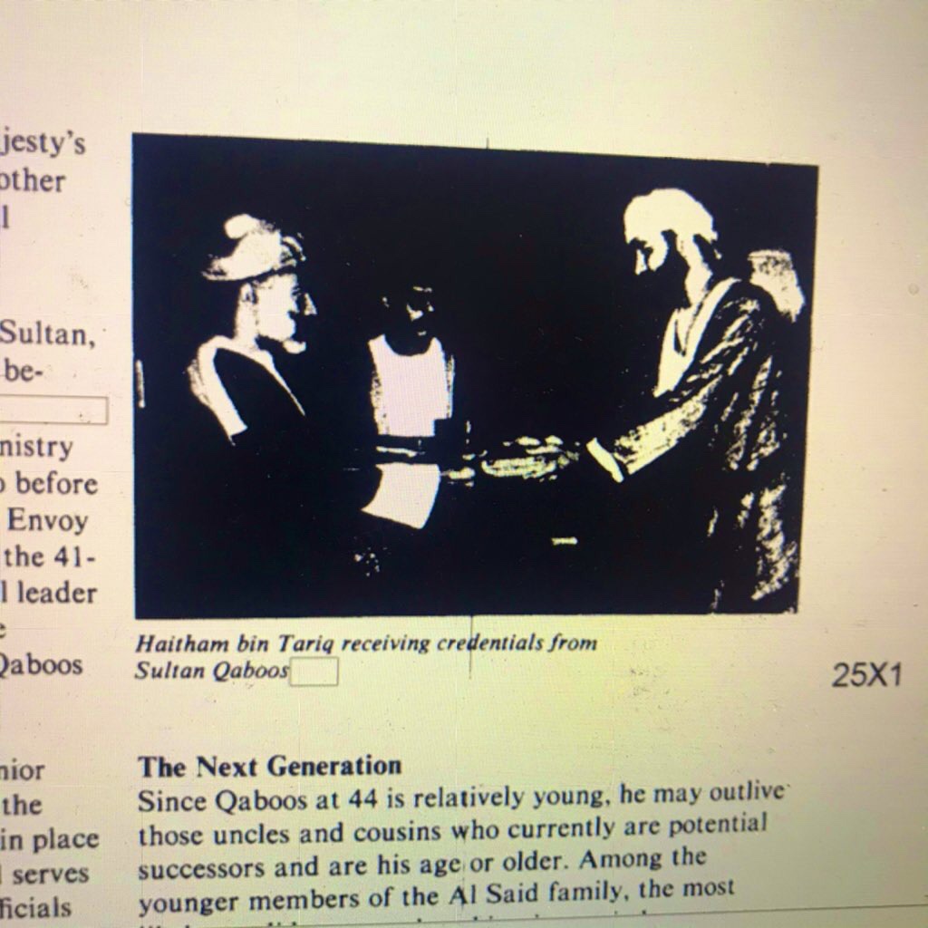 1985 Authored Declassified (2012) Sanitised CIA Intelligence Assessment titled Oman: Domestic Forces and Succession identified the current ruler as a potential successor 35 years back. Some foresight in analysis.