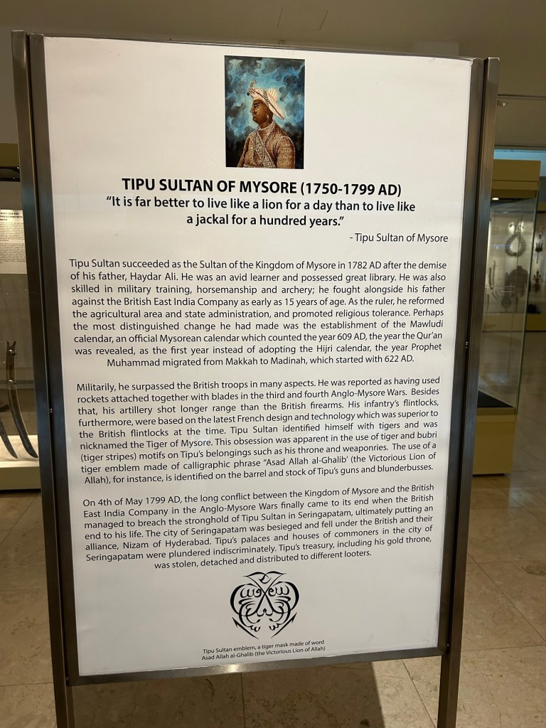 The Islamic Arts Museum surprised the Indian within me by looking at a massive Mughal Art collection and a separate collection dedicated on Tipu Sultan. Such homage is unique in the age of Hindutva where the Mughal past is being replaced by a Hindu right’s version of history.